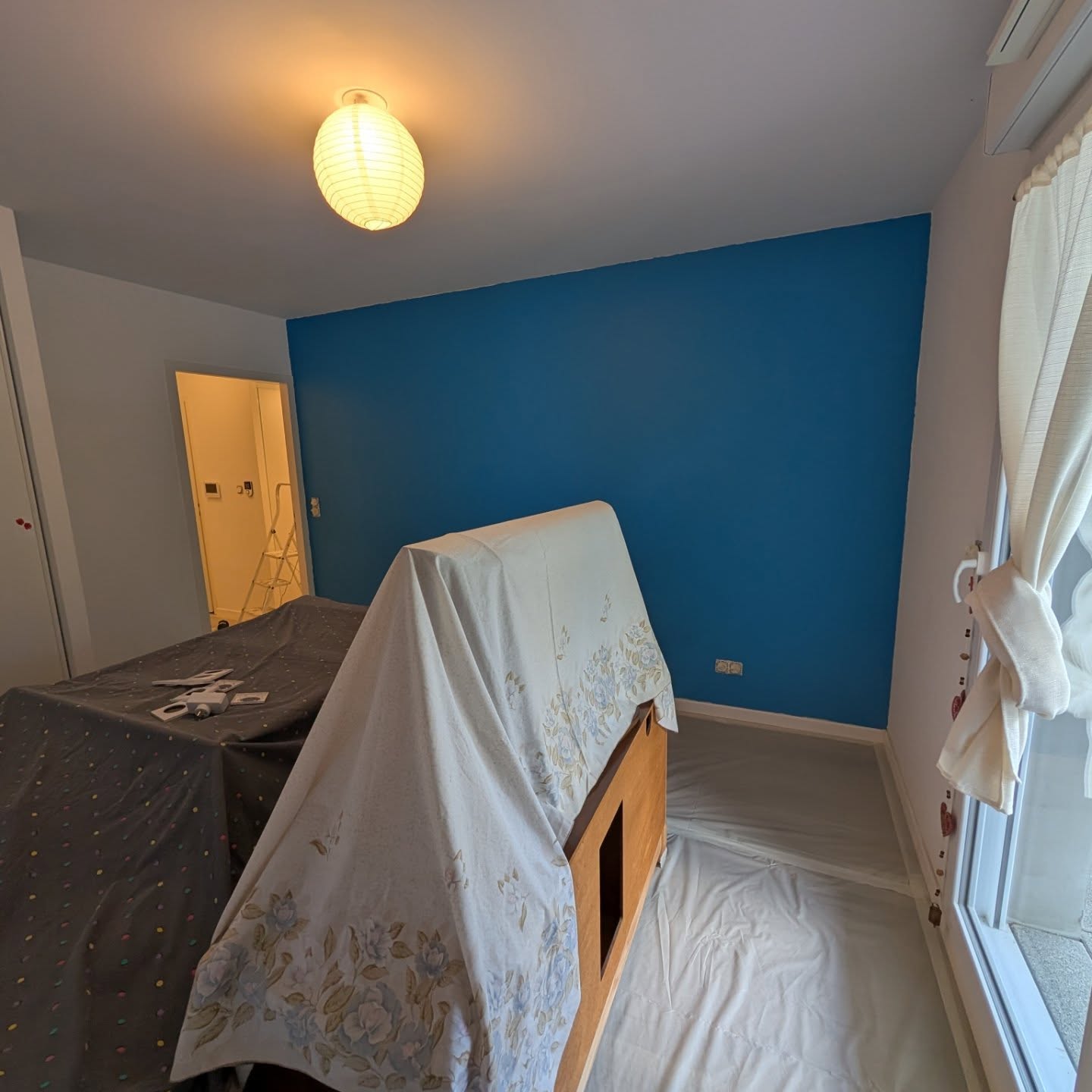 - Mise en peinture de murs, plafonds, portes et boiseries